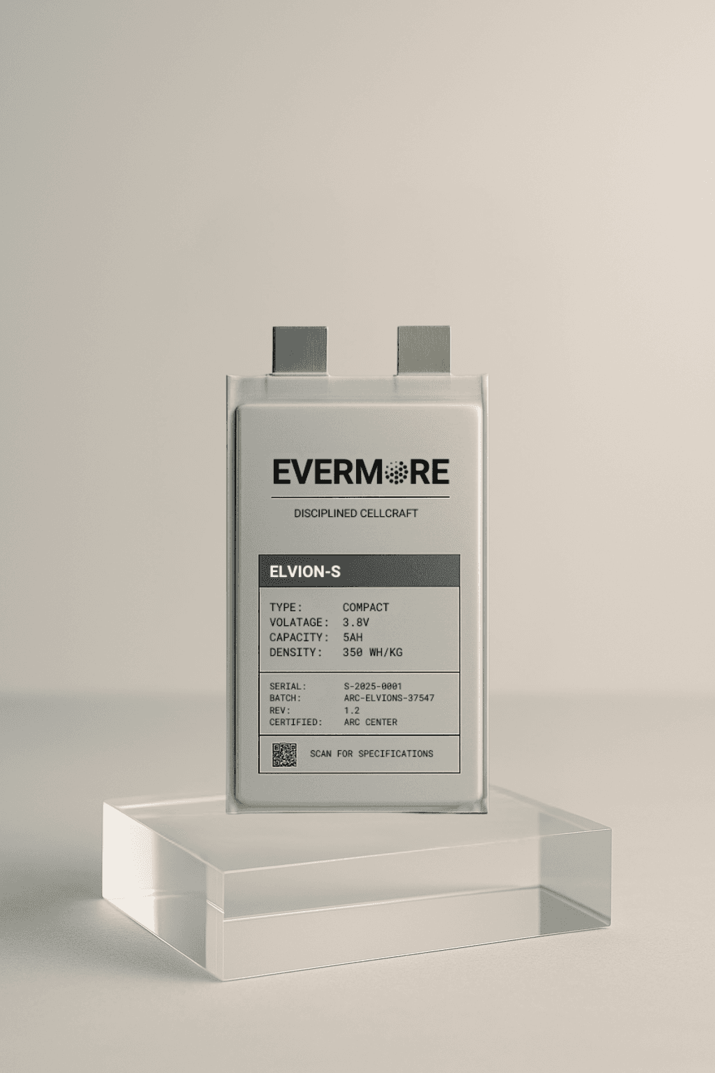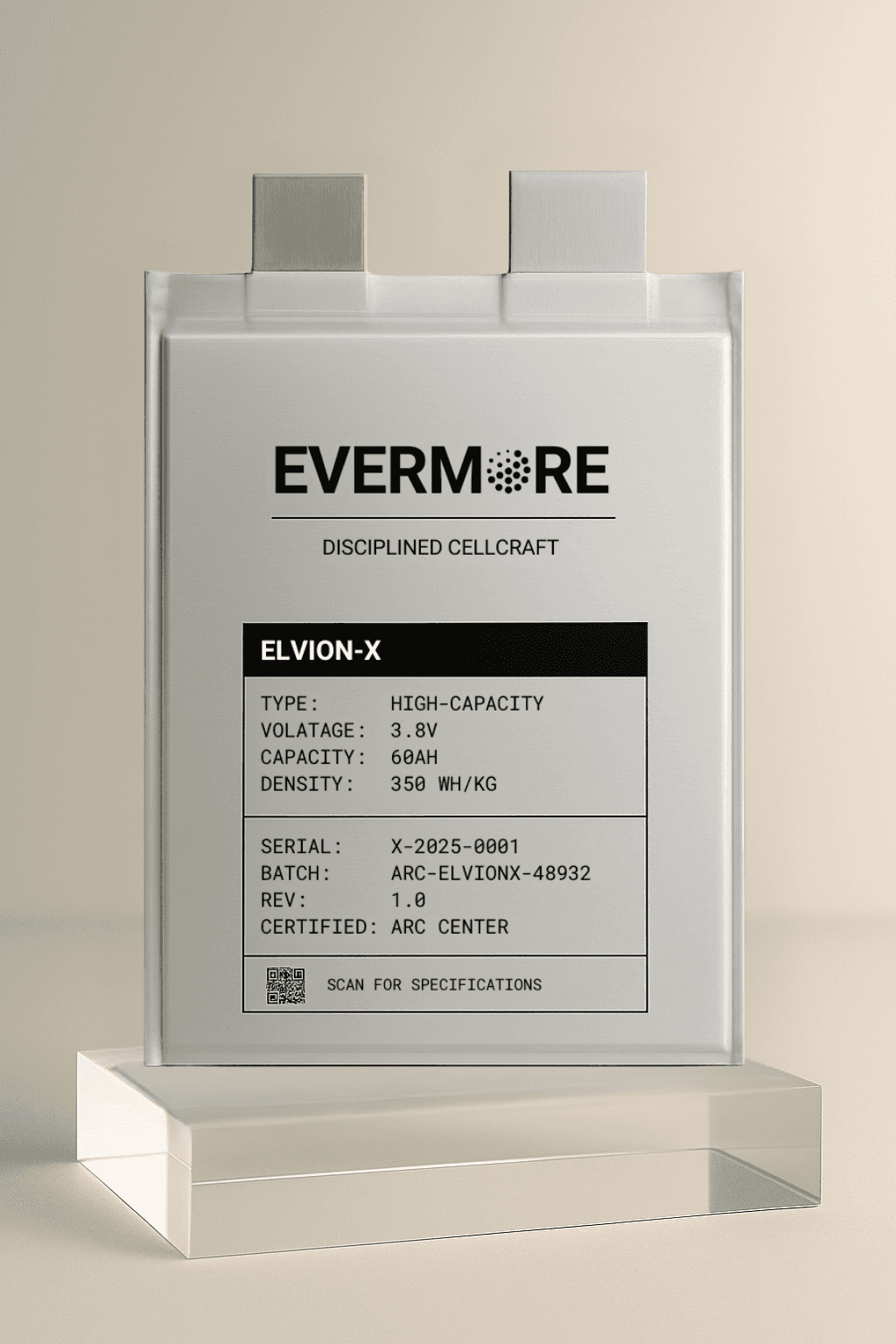 The ELVION™ Platform represents Evermore’s latest generation of semi-solid lithium technology, uniting liquid-phase conductivity with solid-state safety.